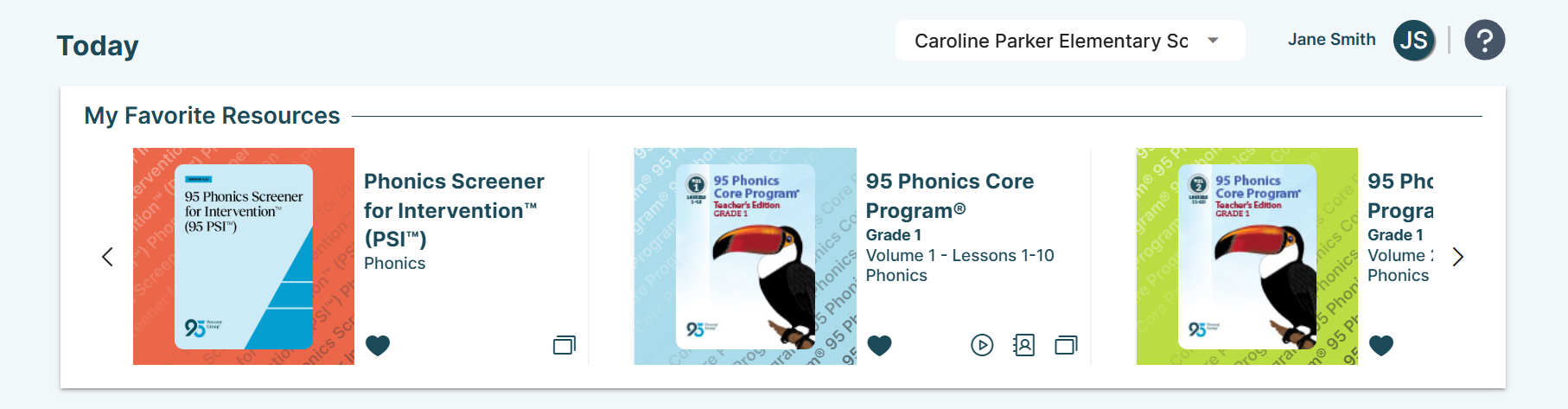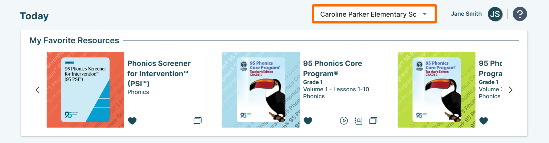 Note: Any favorited resources within the My Favorite Resources carousel will carry over across schools.