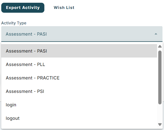 This activity type is available if PASI assessments have been administered in the district.