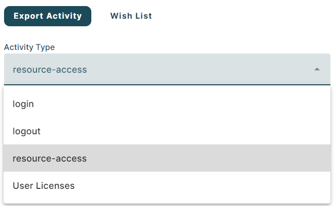 The Export Activity subtab provides insight into how users are leveraging the platform by enabling the download of usage reports.