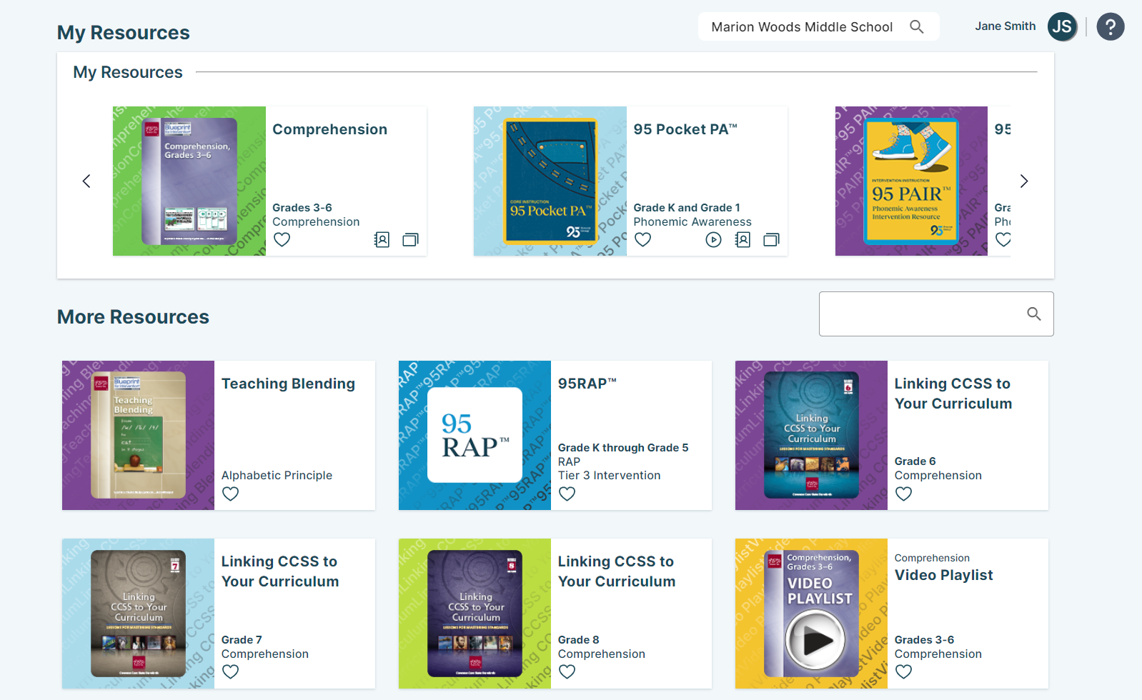 - My Resources section or carousel of the Resources page