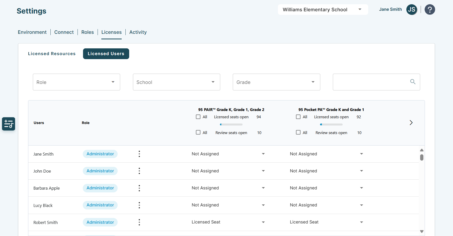 Select User Licenses from the drop-down to download a CSV file of your district's active license assignments.