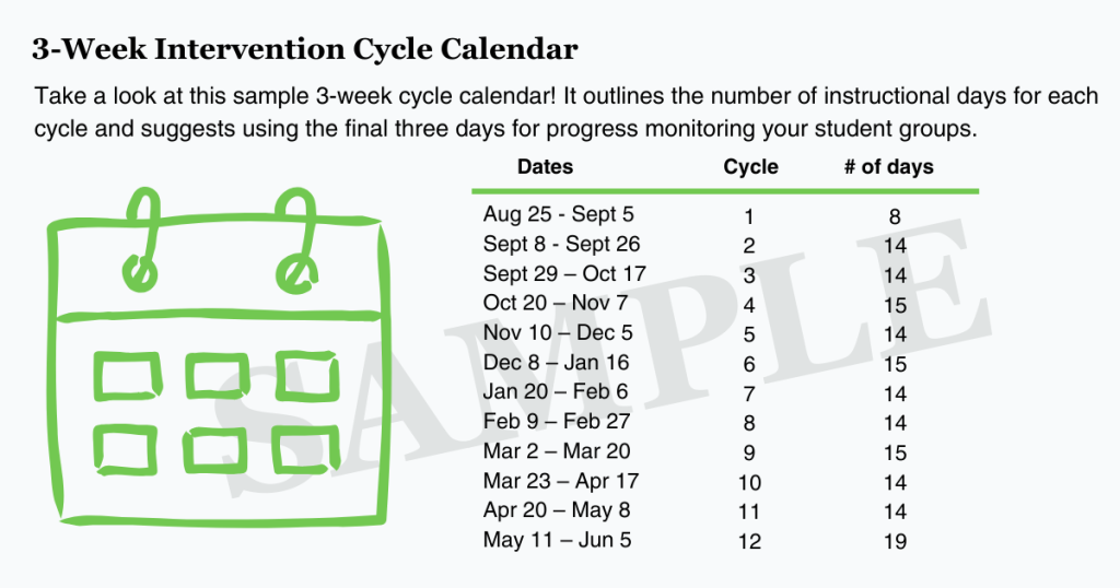 Cycles: This refers to the duration of targeted instruction before progress monitoring. Make sure to align your cycles with your intervention cycle calendar.