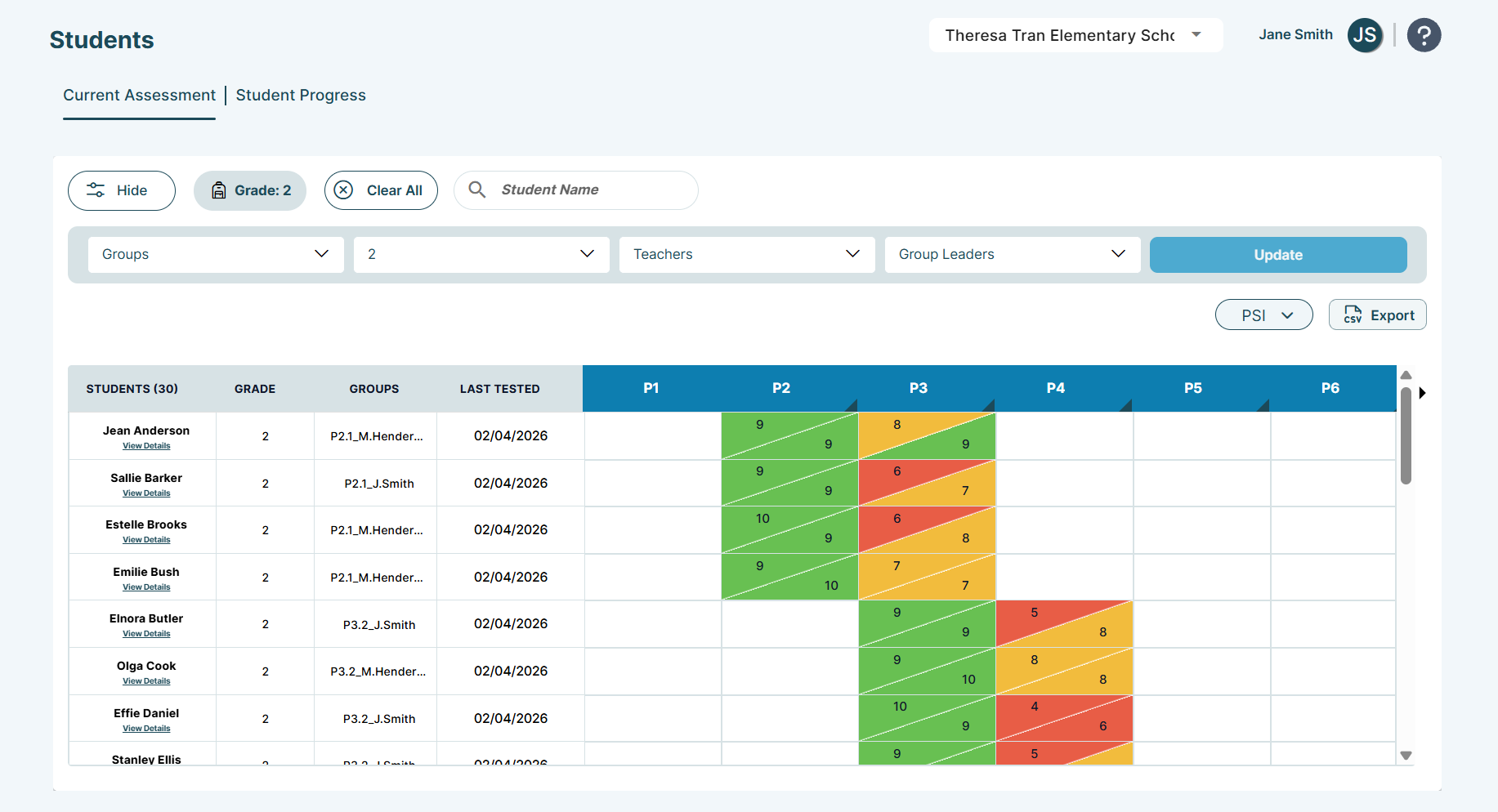 - Navigate to the Students page from the left navigation panel and select the Current Assessment tab. Use the filter options to review assessments by grade level.