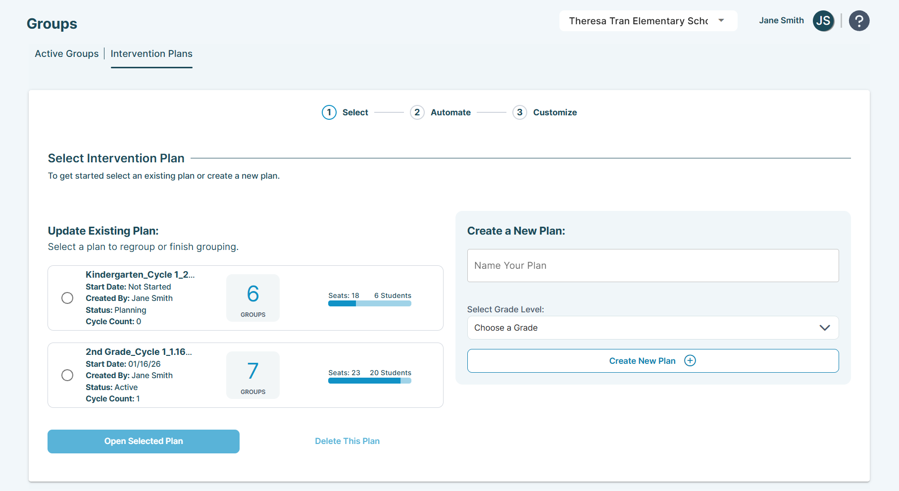 Intervention Plans: These act as the "shell" that holds your student groups for the grade level(s) you have chosen to include in your plan.