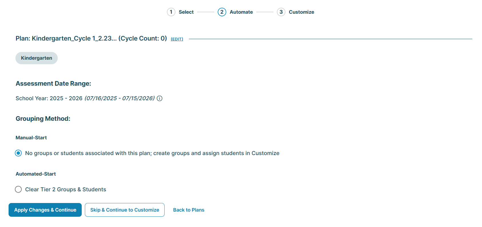 - Automate: Decide whether to use the Automated- or Manual-Start option, informing the 95 LIS how to consider your students' most recent assessment scores.